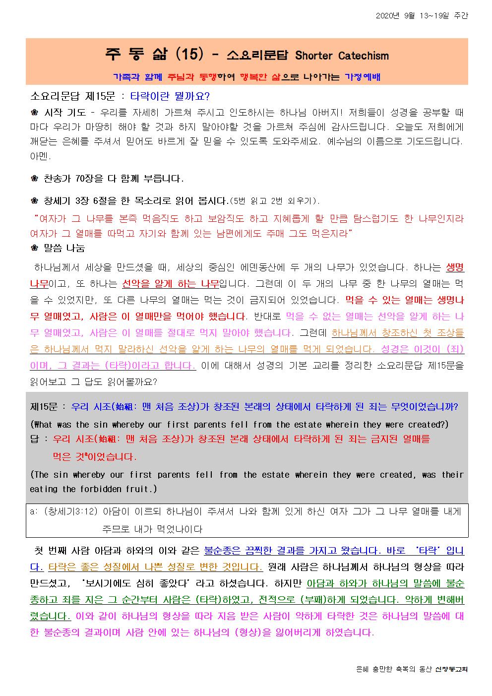 주 동 삶 (15) - 소요리문답 Shorter Catechism