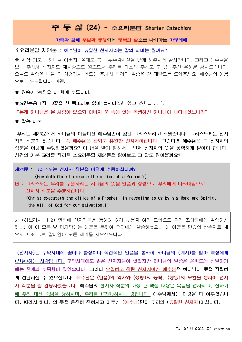 주 동 삶 (24) - 소요리문답 Shorter Catechism
