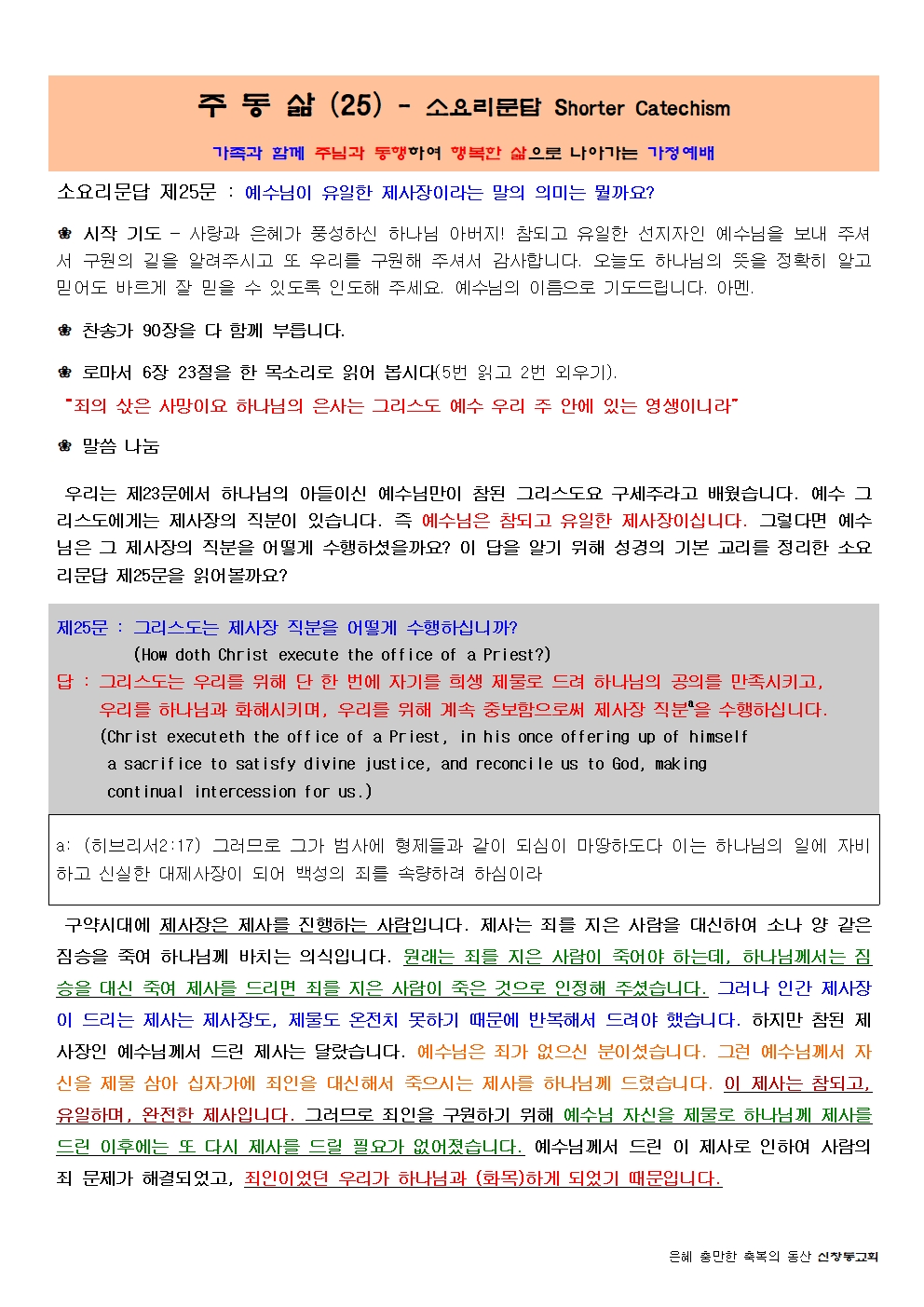주 동 삶 (25) - 소요리문답 Shorter Catechism