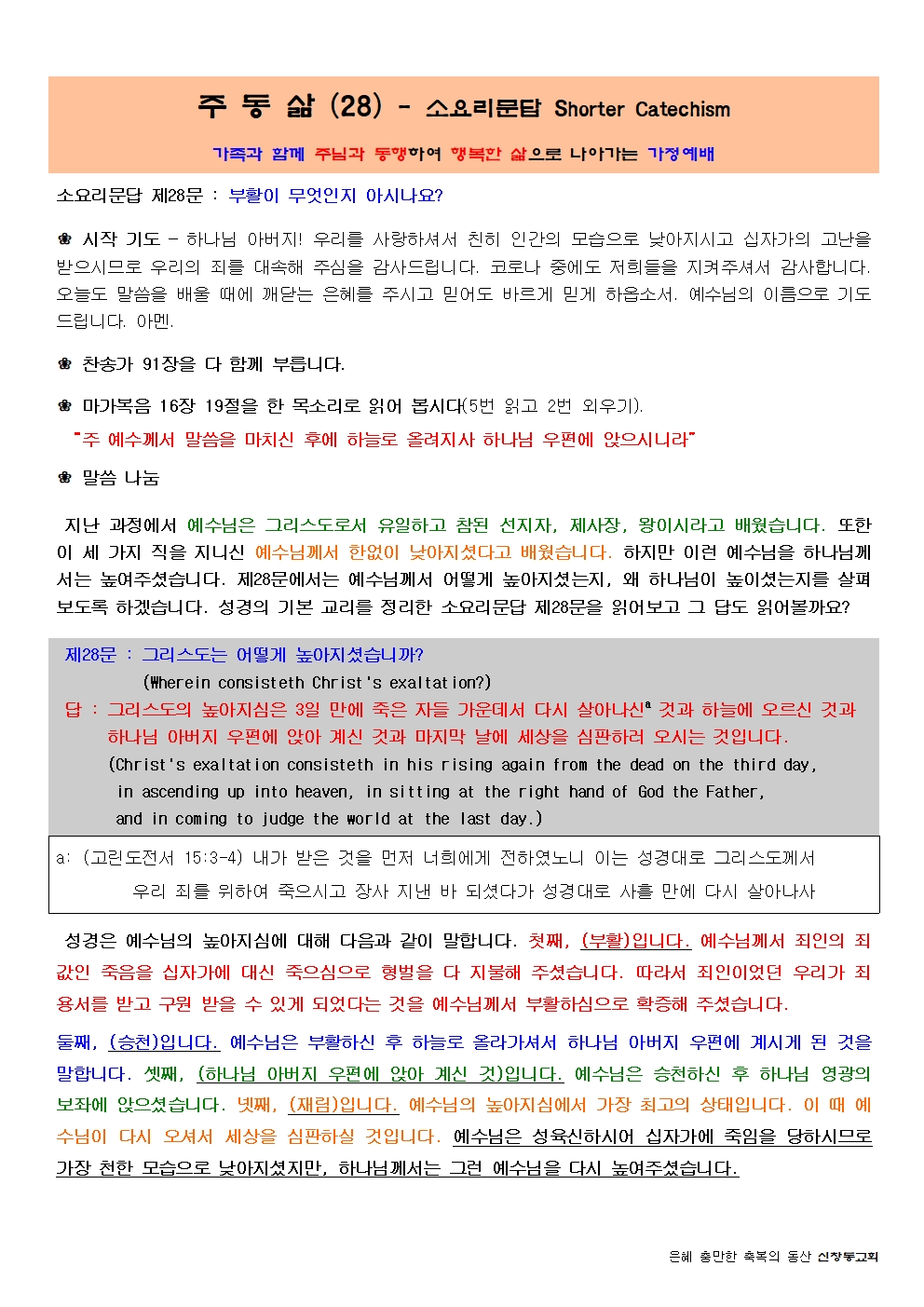 주 동 삶 (28) - 소요리문답 Shorter Catechism